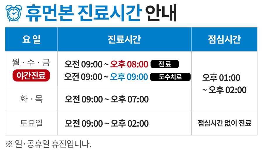 2025년 7월 1일(화)부터, (월·수·금) 야간진료 시간이 변경됩니다.